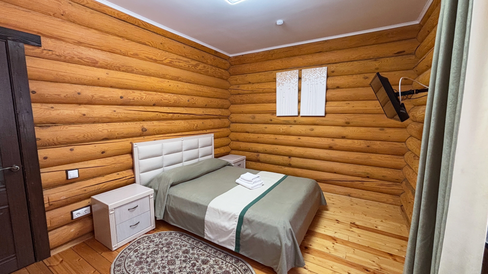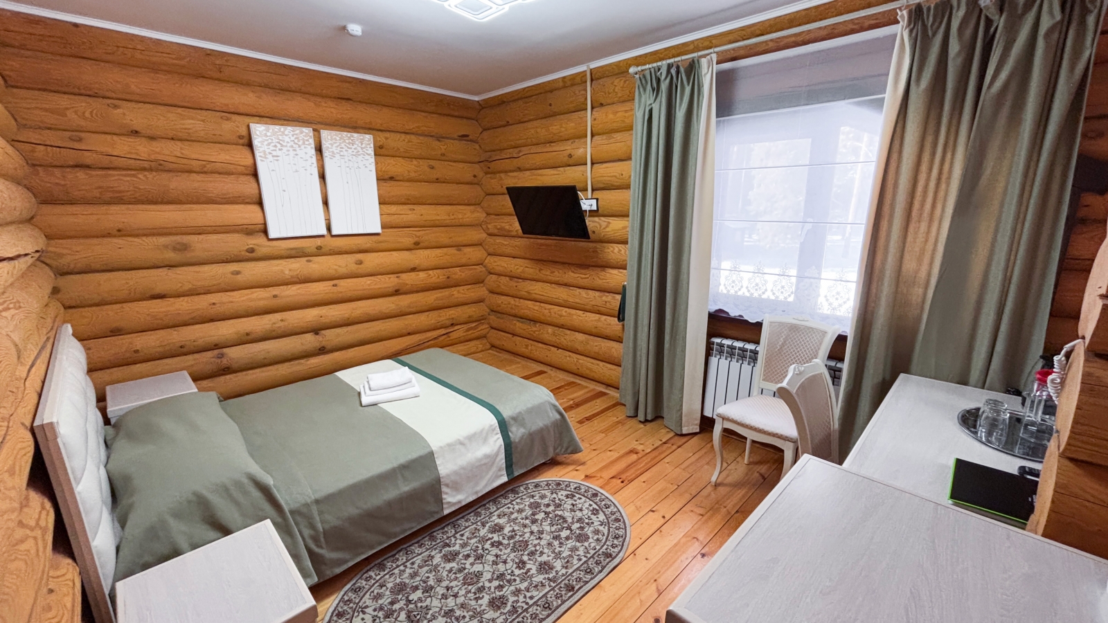 Площадь номера - 23,5 кв.м. 1 осн. место. 1 доп. место. Мебель: кровать двуспальная, прикроватные тумбочки, стол, стулья, шкаф. Оборудование: мини-холодильник, набор посуды, сейф, телевизор, электрочайник. Санузел: с джакузи, туалетные принадлежности, фен. Сервис: Wi-Fi бесплатно, смена полотенец, смена постельного белья, уборка номера.